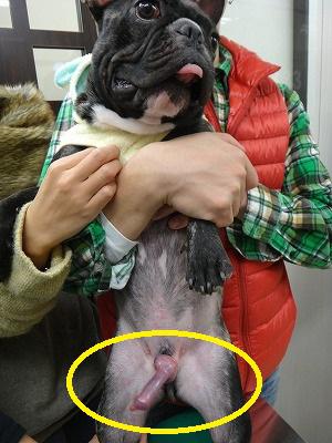 オスの犬のペニスも、ふだんは諸君と同じ(笑)、おとなしい包茎状態である。